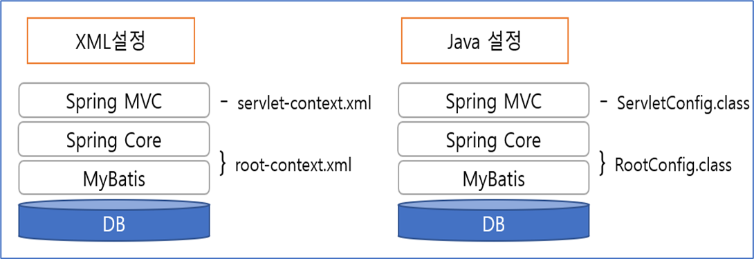 = root-context.xml (일반 자바영역, POJO) + servlet-context.xml (WEB관련 영역)