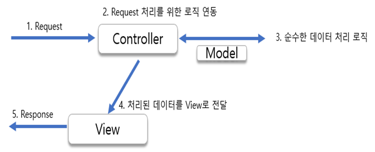 컨트롤러 : 데이터(Model)처리 하고 response 할때 필요한 데이터(model)을 view쪽으로 전달한다.