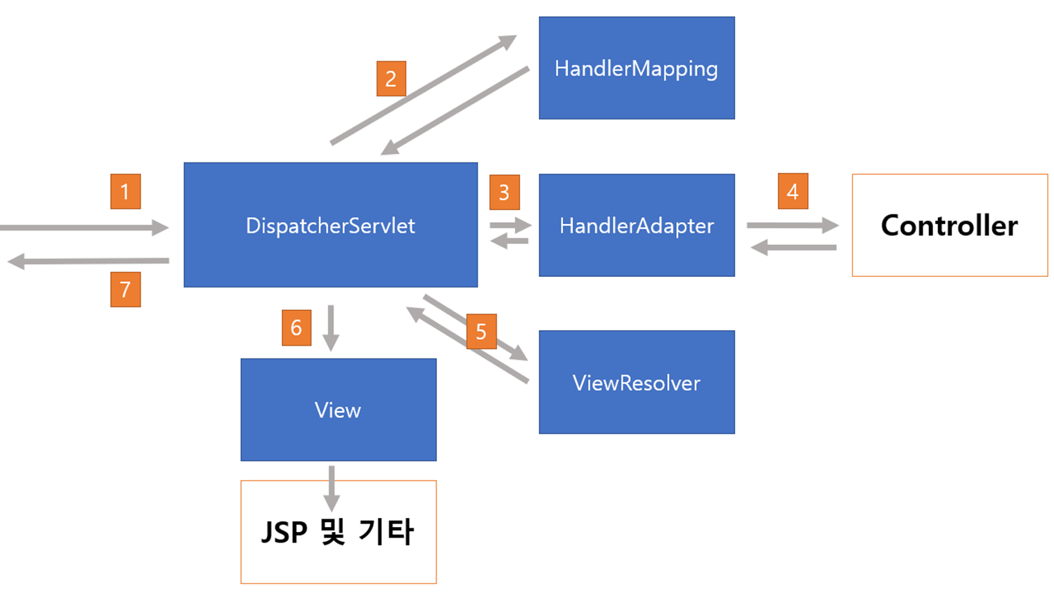 사용자의 Request : Front-controller인 dispatcherServlet을 통해서 처리한다.