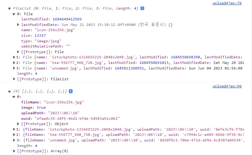한번에 여러개 첨부한경우 (Ajax 호출후 리턴결과포함)